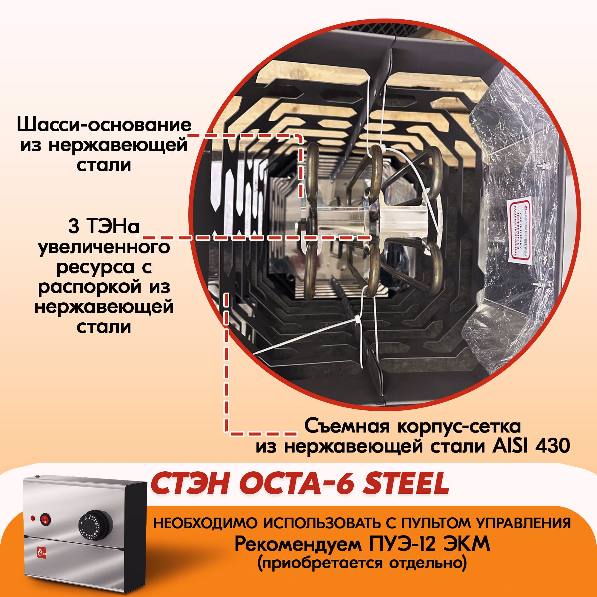 Электрическая каменка СТЭН ЭКМ 6 Octa steel в Серпухове | Доставка по России